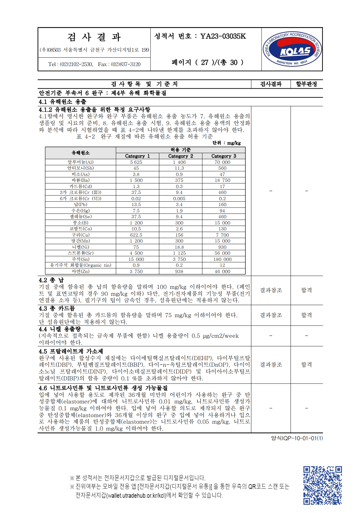 | 검사결과 : 큐브 시험성적서 |